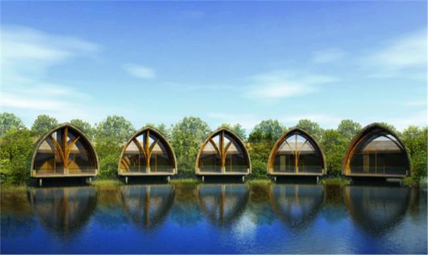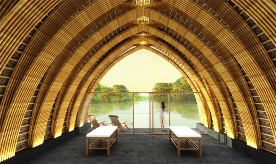 每個房間都是用竹子打造的外殼,它們之間用天然石材連接,突出了項(xiàng)目的重要性。而結(jié)構(gòu)采用了像雙手緊握的狀態(tài),讓這些建筑看上去富有動態(tài),并有著曲線的外觀。