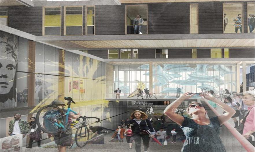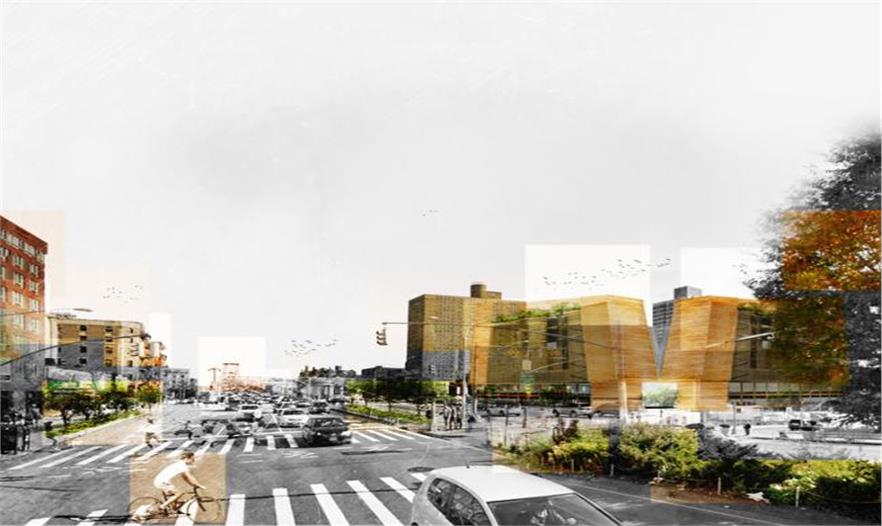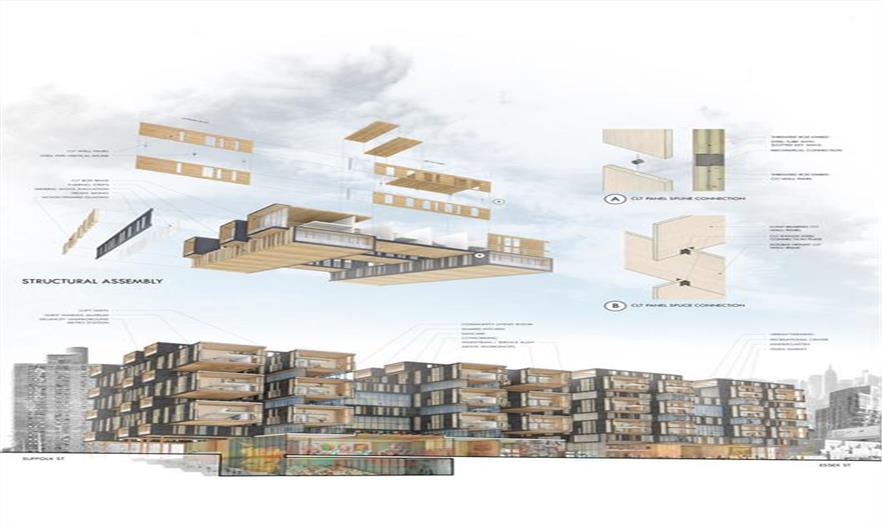競(jìng)賽的場(chǎng)地是在曼哈頓的下東區(qū),要求設(shè)計(jì)一個(gè)居住、休息、娛樂和當(dāng)?shù)匦〕叨菴ommercial exchange,在此同時(shí)要考慮木材的使用可能性與不同的木材科技。