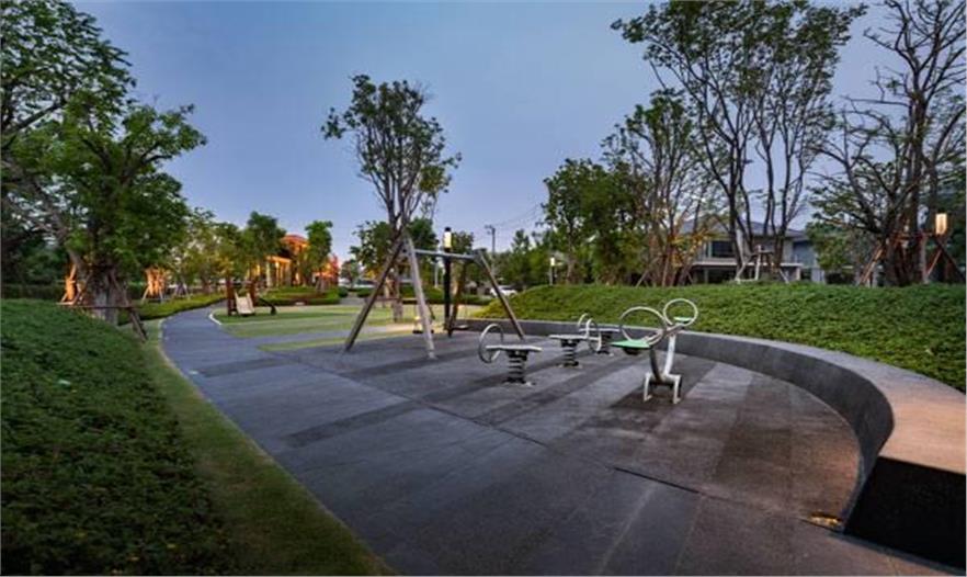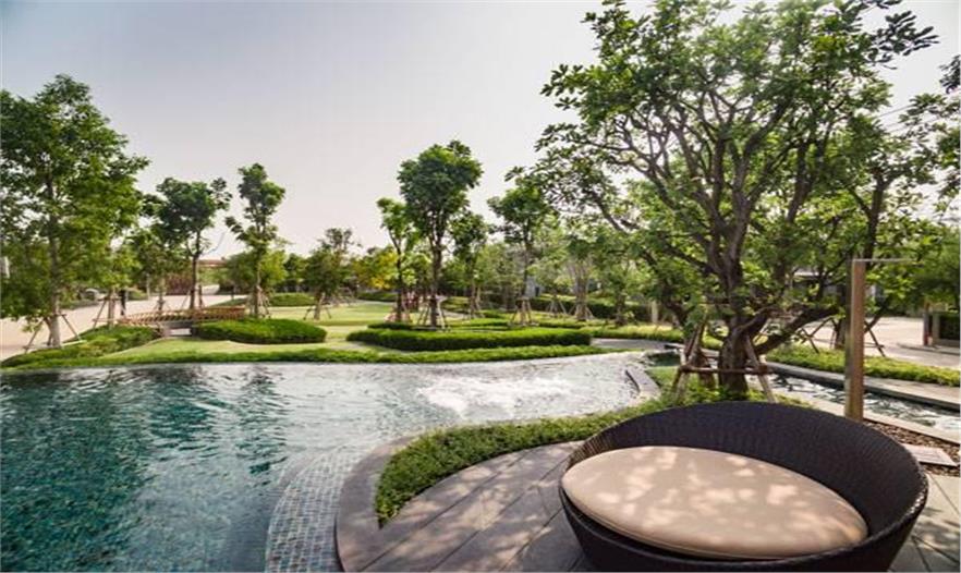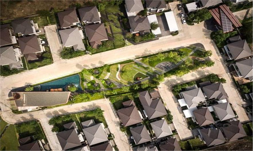 Shma Company事務(wù)所的另一個項目也剛剛完工于孔敬府(泰國東部最大的4個城市之一)。該項目通過運用地勢和其他傳統(tǒng)圖案增強住宅項目的價值,使它成為一個有趣的區(qū)域。正如在許多城市設(shè)計理念中強調(diào)的一樣,住宅設(shè)計中設(shè)置公共空間是很重要的。設(shè)計良好的公共空間能產(chǎn)生良好的生活質(zhì)量。在這個項目當(dāng)中,Burasiri公園正好位于住宅區(qū)的中心,最大化居民的可達性。此外,再加上獨特而有趣的景觀設(shè)計,該公園很受居民歡迎。