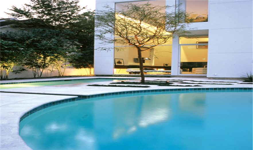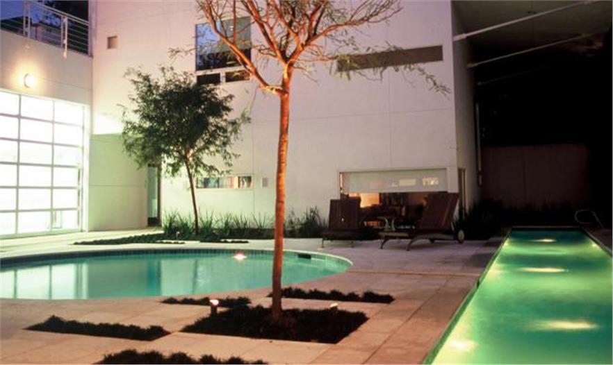 干凈、漂亮的環(huán)形休息池成為該庭院中心的焦點。其水流進鄰近的健身游泳池中,還配有噴嘴。策略性放置的照明設施和獨特的區(qū)域景觀設計塑造了該項目簡潔的現(xiàn)代化設計。