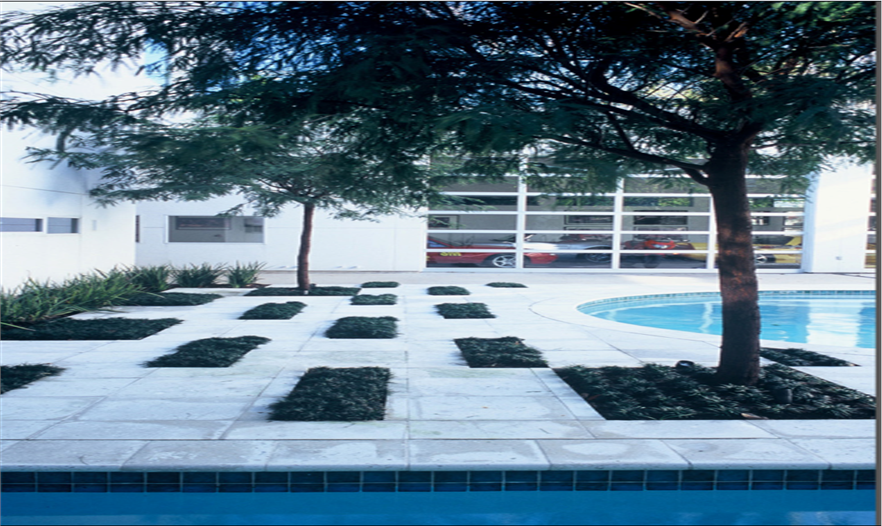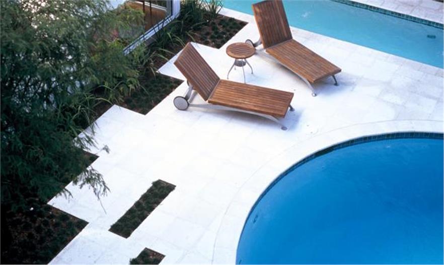 這個獨立家庭住宅建筑強調(diào)室內(nèi)外的融合,庭院景觀補充該住宅建筑的現(xiàn)代化設計。大石鋪裝的露臺成為獨特矩形種植床和木制躺椅的地基,為該空間增添溫暖感。