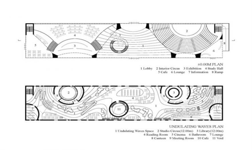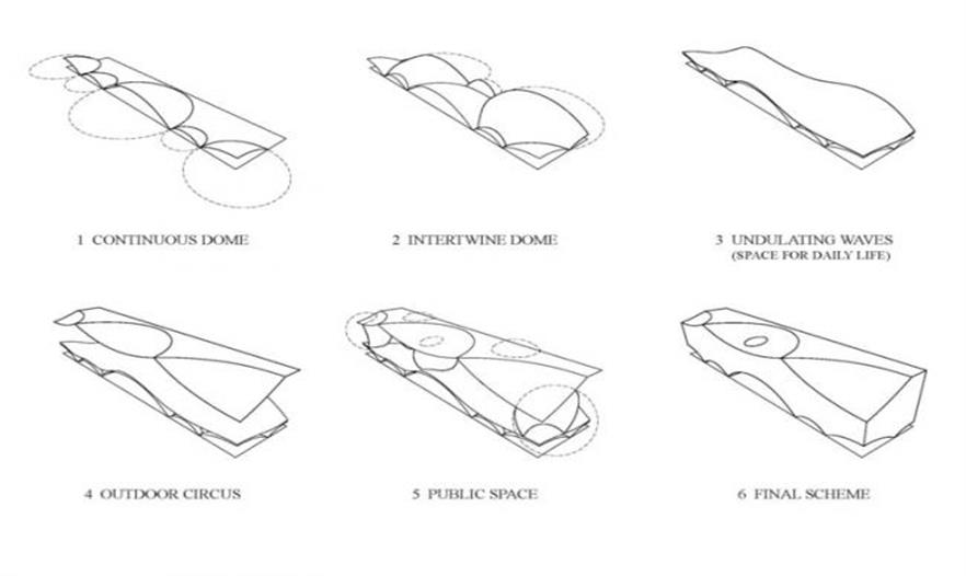 通過將圓頂進行交錯,建筑用模糊的邊界創(chuàng)造出了空間的序列。圓頂之上是被競賽團隊稱為類似“起伏的波浪”的空間,是一個充滿活力的多種公共功能的混合。