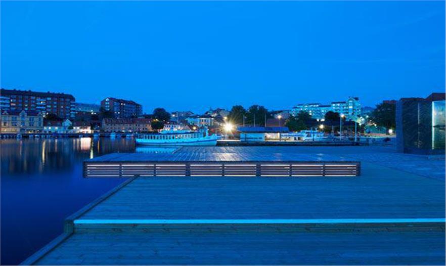 這個(gè)老市場(chǎng)唯一與魚(yú)相關(guān)的就是它的名字。如今,這是一個(gè)人們可以悠閑地欣賞海邊景色的廣場(chǎng),重塑Karlskrona城市的獨(dú)特性。一個(gè)被稱(chēng)為“陽(yáng)光甲板”的木板面在夜間提供照明,如同地標(biāo)一樣可以遠(yuǎn)遠(yuǎn)地看到。魚(yú)市同時(shí)也是藝術(shù)家Pål Svensson設(shè)計(jì)的“Doldrums”雕塑的所在地,由花崗巖和玻璃制成。