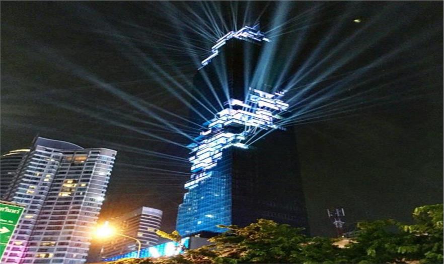 新建的高達(dá)314米的泰國(guó) (Thailand’s) 最高建筑 MahaNakhon 在一場(chǎng)華麗壯觀的燈光表演中正式開放使用,燈光的照射下更加凸顯出建筑像素化設(shè)計(jì)的特點(diǎn)。這座由設(shè)計(jì)師Büro Ole Scheeren 設(shè)計(jì)的高77層的混合多功能摩天大廈,集酒店,零售,酒吧,餐廳和觀景平臺(tái)空間于一體,同時(shí)還有200套由麗嘉酒店住宅管理的獨(dú)立公寓,在這里可以欣賞到無與倫比的曼谷(Bangkok)天際線和更遠(yuǎn)的景色。盤旋上升的像素化設(shè)計(jì)雕刻成了建筑獨(dú)特的外形,創(chuàng)造出了一棟“圍繞保護(hù)著居民,同時(shí)顯露出他們內(nèi)心世界的建筑”。
