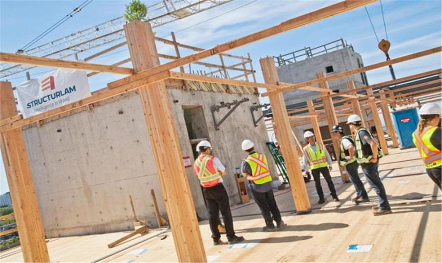 世界最高的木結(jié)構(gòu)高樓于本周封頂。在溫哥華 Vancouver 的天際線里,53米高的它也是十分出眾。這個(gè)18層的高樓由 Acton Ostry Architects設(shè)計(jì),并從2015年11月開(kāi)始施工。之后大型木塔的“水閘”仿佛閥門(mén)被打開(kāi),用處層層巨浪。該建筑以破記錄的速度拔地而起,能容納404名來(lái)自 University of British Columbia (UBC)的Brock Commons Student Residence的學(xué)生?,F(xiàn)場(chǎng)外生產(chǎn)與精心的工種協(xié)調(diào)確保了每周2層的建造速度,預(yù)計(jì)官方的最終交工時(shí)間是2017年中期。