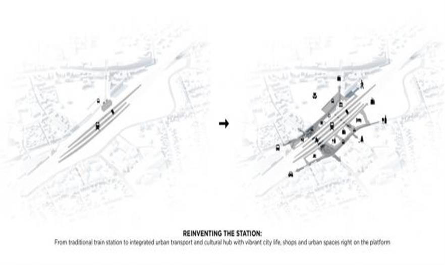 這個(gè)獲獎(jiǎng)設(shè)計(jì)中,酒店,咖啡館和餐館直接坐落于站臺(tái)的兩旁,這意味著旅客將這個(gè)熱鬧的街區(qū),在下車后就會(huì)迎來(lái)各種問(wèn)候。