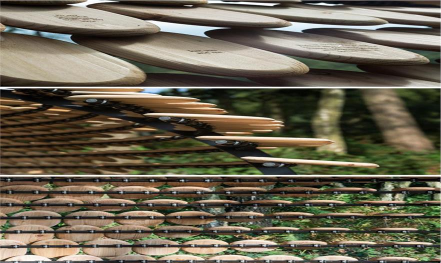 人們銘記公共空間和樹木的語句激發(fā)了設(shè)計(jì)師的靈感,讓雪松木瓦展現(xiàn)出詩意,雕刻當(dāng)?shù)貙W(xué)校、居民和其他捐助者傳達(dá)愛的信息和語句。