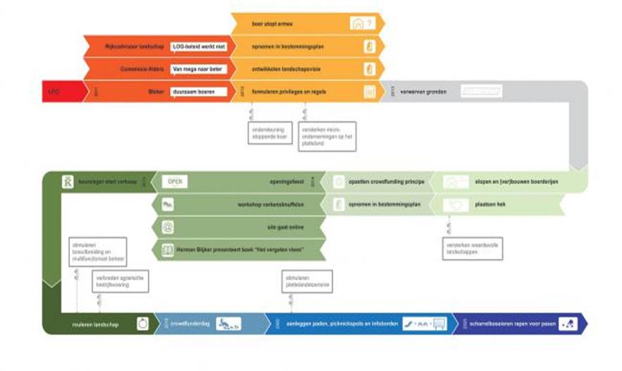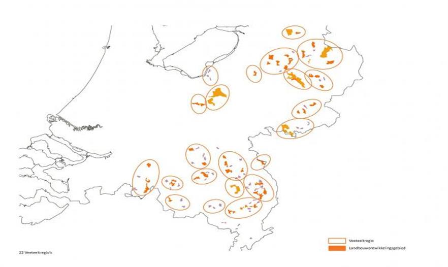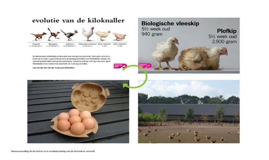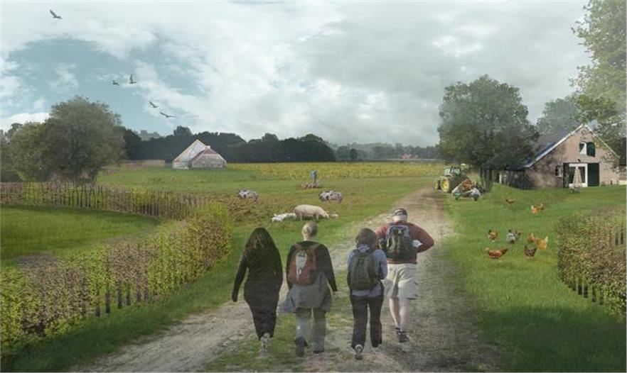 這些思考和生產(chǎn)的新方法經(jīng)常是小規(guī)模和局部的,不會對整個生產(chǎn)和消費(fèi)鏈產(chǎn)生很大的影響。LOLA事務(wù)所想要助力這一影響,研究/設(shè)計(jì)了2個區(qū)域規(guī)模的新方法,生產(chǎn)生物豬肉和雞蛋。第一步是避免在136農(nóng)業(yè)發(fā)展區(qū)(Landbouwontwikkelingsgebieden)實(shí)驗(yàn),因?yàn)樗鼈兊奈恢貌缓线壿?,而且最近幾年表明這些區(qū)域已經(jīng)沒有辦法運(yùn)作了。該方案是設(shè)置22個可持續(xù)農(nóng)業(yè)發(fā)展區(qū)。每個區(qū)域盡可能進(jìn)行局部、生態(tài)生產(chǎn)。一般雞蛋成為Barnevelder雞蛋,一般豬肉成為Bonte Bentheimer肉。對于每個區(qū)域都會應(yīng)用2個概念。一個被稱為Koplopers:生態(tài)農(nóng)業(yè)區(qū)的景觀結(jié)構(gòu)。這些地產(chǎn)要以舒適、公共方式建造典范、創(chuàng)意性的生態(tài)豬場。另一個被稱為Fijnproevers。其提議將豬散養(yǎng),而不是養(yǎng)在豬圈里。豬喜歡外面,進(jìn)行社交活動。讓它們在泥土中打滾,讓它們成群結(jié)伴。當(dāng)農(nóng)場區(qū)離住宅區(qū)較遠(yuǎn)時,這是有可能的,每年土地轉(zhuǎn)換進(jìn)行谷物生產(chǎn)、養(yǎng)豬和自然發(fā)展。這些豬會營造出全新的景觀,供游客觀賞。