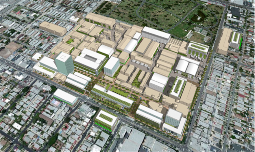 該方案主要是保護過去的元素,聚焦梅爾羅斯大道特定區(qū)域的未來發(fā)展以及生產(chǎn)核心的限制區(qū)域,改造入口,營造出梅爾羅斯邊緣發(fā)展的連續(xù)性,投資先進的生產(chǎn)設(shè)備,從攝影棚到高科技后期制作和輔助設(shè)備,如道具、照明等,提供生產(chǎn)大本營,提高發(fā)行量,帶來辦公區(qū)和生產(chǎn)輔助設(shè)備,一起用于改善合作和流線型的操作。