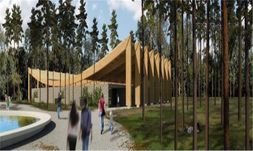 這是個落葉形狀的建筑,是由 Eric Rodrigues埃里克·羅德里格斯設計,并且在烏克蘭Cherkasy城市公園的新森林露天劇場設計競賽中獲得了一等獎。建筑師是將舊建筑拆除后,汲取了來自大自然的靈感來設計這座新的劇院:它將會和切爾卡瑟市政公園景觀集成到一起,建筑材料只使用天然的和本地采購的石材和木材。用木材膠合在一起的屋頂是一片落葉的樣式,這種自然的傾斜方式有助于提高劇院的音響效果。