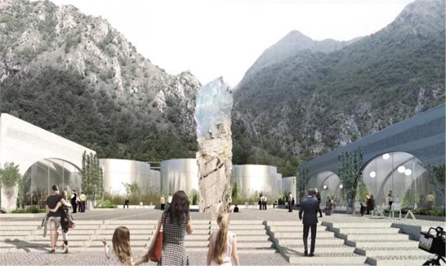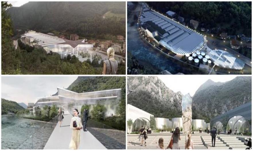 方案設(shè)計(jì)主要聚焦在一系列的擴(kuò)建和收縮內(nèi)部拱形空間,從而創(chuàng)造出多種不同的空間類型,比如壯麗的拱頂,封頂?shù)乃淼?,拱形游廊和綠廊,與此同時,這些空間也為游客提供了觀賞周圍壯美山脈的觀景點(diǎn)。