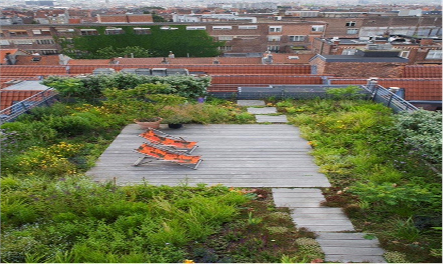 這個屋頂花園模擬自然的野性之美設(shè)計。這些植物自然生長,給人一種蔓生、自然的感覺,但不會妨礙空間的用途。地面鋪有木條,也作為踏腳石。