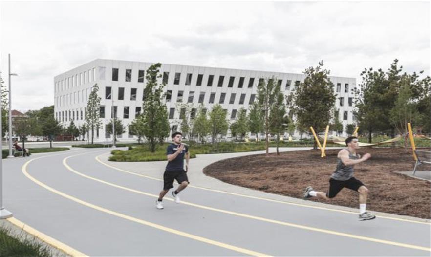 費(fèi)城1200 Intrepid項(xiàng)目是榮獲LEED金獎(jiǎng)的辦公建筑,形態(tài)由Robert Stern作出的矩形城市規(guī)劃以及James Corner設(shè)計(jì)的標(biāo)志性的圓形中央綠色公園構(gòu)成。