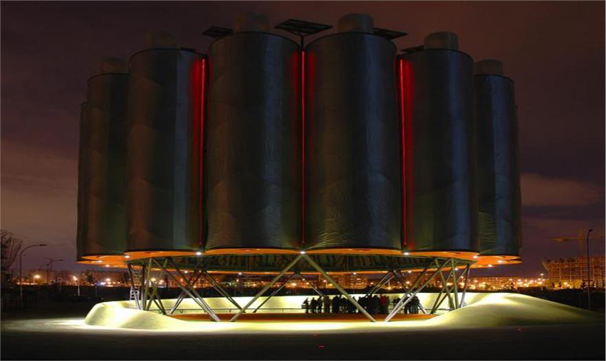 這個(gè)回收、光線充足的結(jié)構(gòu)是由鍍鋅鋼構(gòu)成,可以進(jìn)行多種活動(dòng),滿足使用者的需求。他們使用基于蒸發(fā)制冷而成的被動(dòng)空氣調(diào)節(jié)系統(tǒng)(經(jīng)常在溫室中使用),是使用現(xiàn)成的產(chǎn)品和技術(shù)確保效率和低成本的例子。在空氣凈化器頂上,定向的集風(fēng)口借助風(fēng)扇將空氣引入塔樓中。干空氣穿過水噴霧,變成濕氣和雨滴,營造小氣候,減少溫度,尤其在高溫和相對(duì)潮濕的區(qū)域尤其明顯。Ecosistema Urbano事務(wù)所的首席設(shè)計(jì)師Belinda Tato表示:“我們相信我們的工作是具有教育意義的。我們意在提高對(duì)環(huán)境的尊重態(tài)度。我們喜歡結(jié)合可回收或再生的材料。我們一直知道用可用的新技術(shù)探索可實(shí)施方案(已經(jīng)在市場(chǎng)存在的)更多的可能性。”。