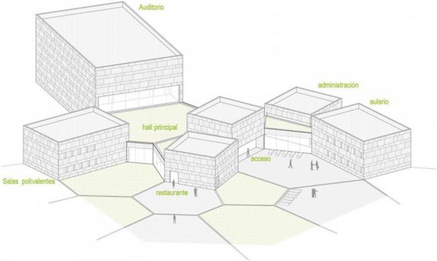 項目設(shè)計的出發(fā)點是過去的一次環(huán)境研究,在這次研究中,建筑師發(fā)現(xiàn)Concello do Verín圍繞城市核心發(fā)展,其中的街區(qū)盡管形狀不同,但大都有相同的配置,這種異質(zhì)性讓它們在區(qū)域內(nèi)顯得與眾不同。在這些街區(qū)中,許多小房子沿街邊布置,面向道路留有開口,連接公共的室內(nèi)空間,將不同的建筑聯(lián)系在一起,成為Verin內(nèi)的社區(qū),亦被稱作“城鎮(zhèn)”。這些“城鎮(zhèn)”的排布秩序不是固定的,而是根據(jù)其靈活多變的功能隨機形成。