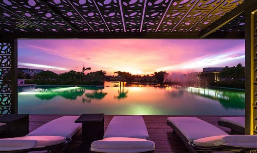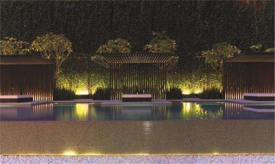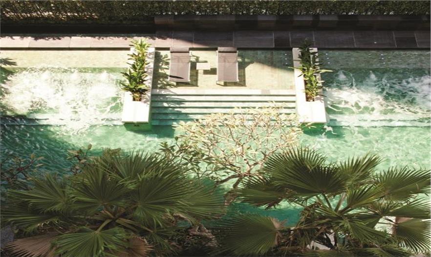 3棵從泰國森林移植過來的老蒲桃樹賦予了該建筑莊嚴(yán)的氣場,同時(shí)雕塑墻圖案和特色如一個(gè)50米的游泳池到發(fā)光的瀑布增添了其視覺誘惑。為了彌補(bǔ)該公寓空間有限的缺陷,設(shè)計(jì)師James Luhur利用幻覺產(chǎn)生空間開放的感覺。