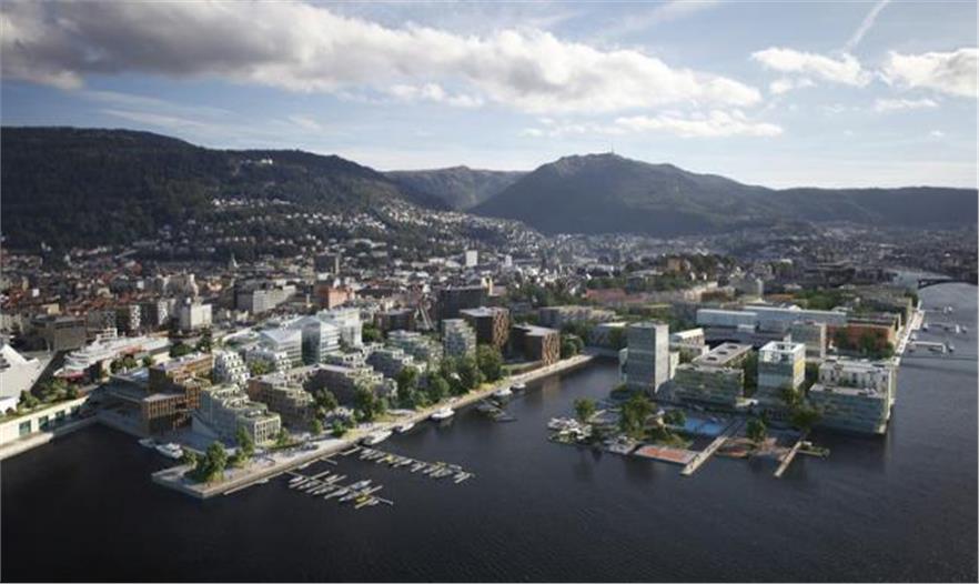 位于挪威的卑爾根港,該項目將成為挪威第二大開發(fā)項目,可容納3,500套住宅和8,000個工作室空間,3.7萬平方米的公共公園,以及走道系統和自行車道。