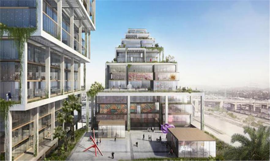 Bjarke Ingels Group事務(wù)所(BIG)公布了洛杉磯文化區(qū)的一個新型L狀多功能項目方案。