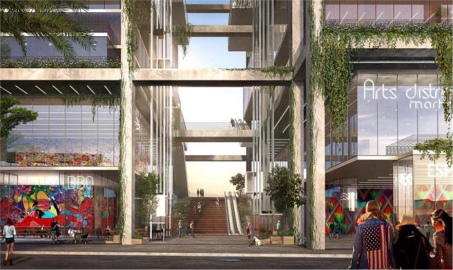 該項目計劃包含7.4332萬平方米(80萬平方英尺)的辦公空間、250個住宅樓單元和2個特色酒店。該項目由Vella Group 集團開發(fā),目的是在之前的工業(yè)社區(qū)增加公共戶外空間,設(shè)計一個大型露臺,將該區(qū)域與洛杉磯河連接起來,現(xiàn)在由于一座鐵路立交橋?qū)⒃摻ㄖ驮摵恿鞅舜朔蛛x。