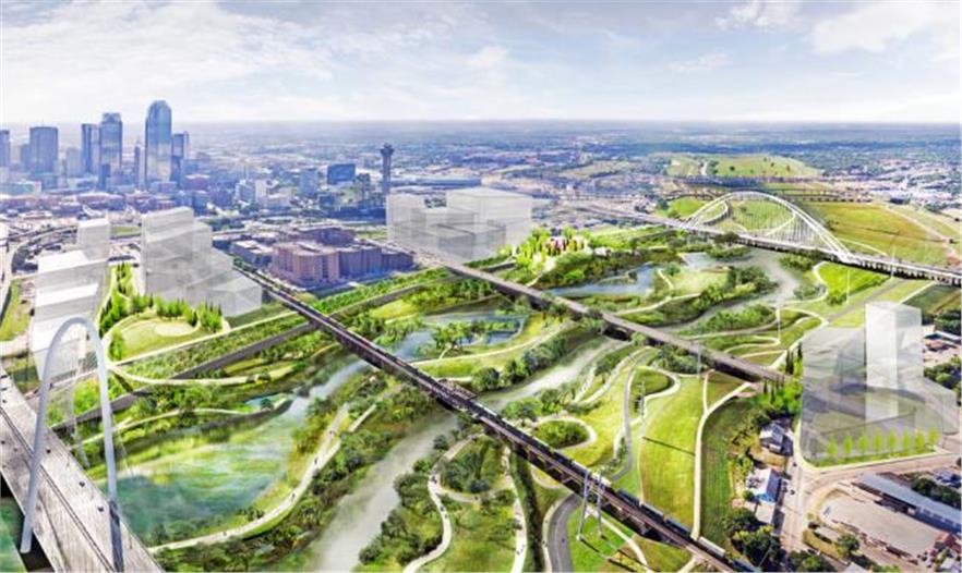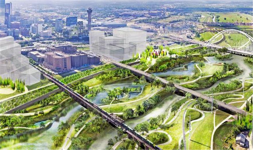 德克薩斯州的達拉斯即將成為美國綠化程度最大的城市之一,它要建造美國最大的一個城市自然公園。達拉斯的新“自然區(qū)”約4046公頃(10000英畝),包括2832公頃(7000英畝)的Great Trinity Forest森林。三一河公園(Trinity River Park)是由Michael Van Valkenburgh Associates事務(wù)所設(shè)計,將達拉斯的一個泛濫平原修復(fù)成一個繁茂的綠色休閑區(qū)。