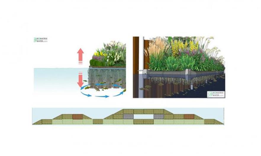 因一個不銹鋼、快速連接的系統(tǒng),這些漂浮的花園固定在原地,這樣更容易在河邊增添額外的花園,混凝土錨點確保能夠使用加重的導(dǎo)軌。設(shè)計師提議的結(jié)構(gòu)是182米×3米(600英尺×10英尺),安裝在4個本土濕地和草原植物種類豐富的地區(qū)。