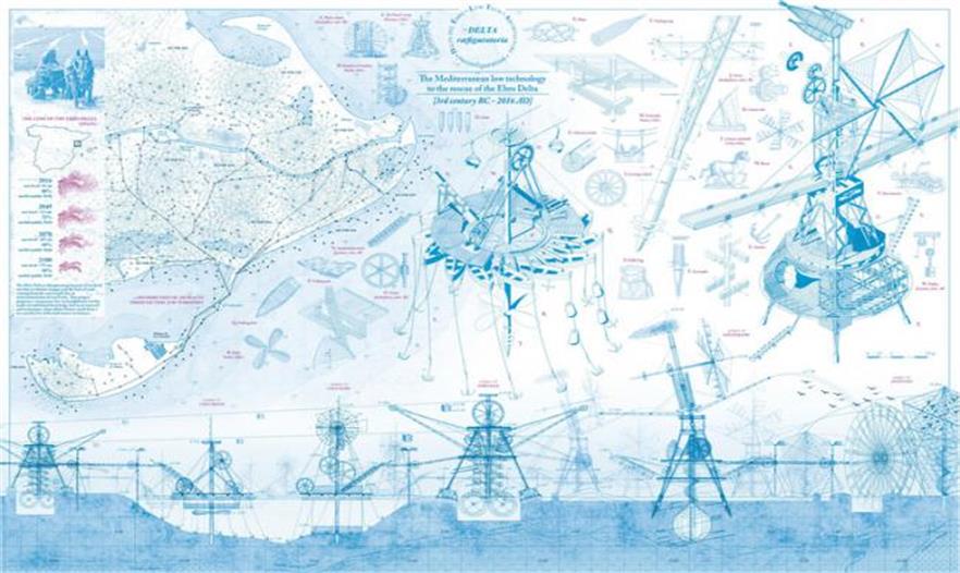 埃布羅三角洲,作為地中海最雄奇獨特的景觀,如今正面臨下沉。 埃布羅盆地上世紀經(jīng)歷的大規(guī)模水庫工程導致本應保持在三角洲里的的沙子移到了山中。 DELTA Raefiguratoria (埃布羅三角洲低科技建筑再配置)是一篇橫亙過去到未來的建筑論文。DELTA Raefiguratoria采用了懷舊未來主義的語言,旨在 為低科技建筑進行宣言: 過去2000年它已經(jīng)實現(xiàn)了我們知道的所有成就,為什么不能在如今的高科技世界再給它建造我們未來的機會?