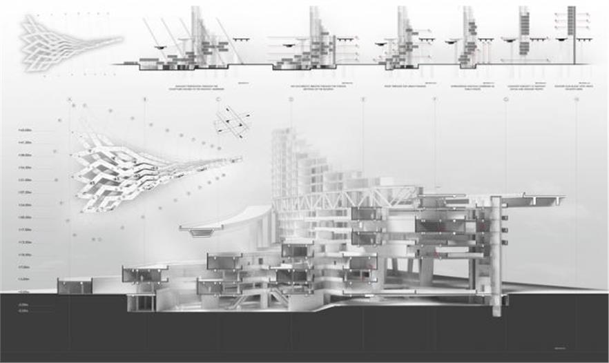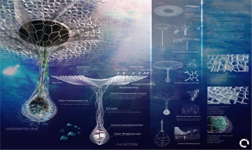 水文簇(The Hydrological Cluster)投身于全球化的自然環(huán)境問題之一——水資源消耗與海平面上升。氣候災難與人為影響逐漸造成了水資源短缺。仿生策略是對于該全球環(huán)境問題的現(xiàn)代性回應。