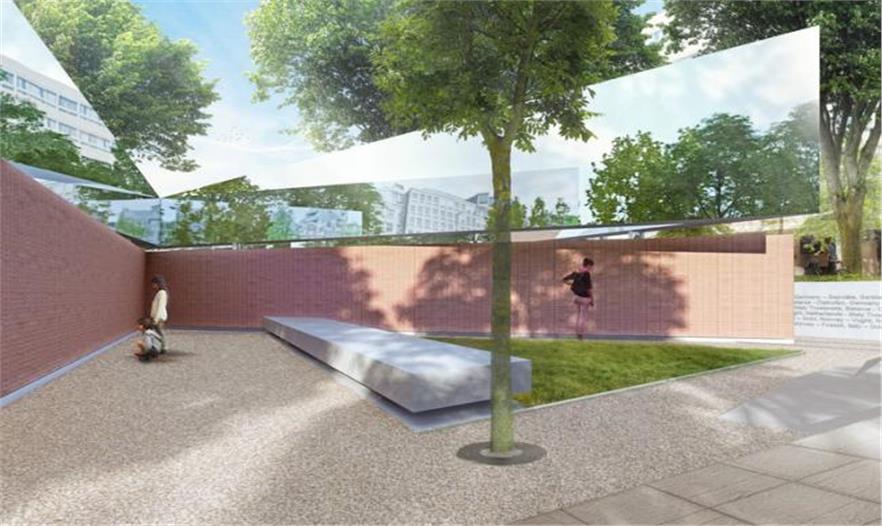 紀(jì)念碑包含1550平方米(16680平方英尺)的區(qū)域,將由四組靠近的懸掛起來的鏡面體量組成,下方有兩米高的磚墻支撐,這些墻面承載著記憶的信息。墻面由102000塊磚組成,每塊磚刻有一個(gè)受害者的名字,另外還有額外的1000塊空白磚,以紀(jì)念不知名的受害者。