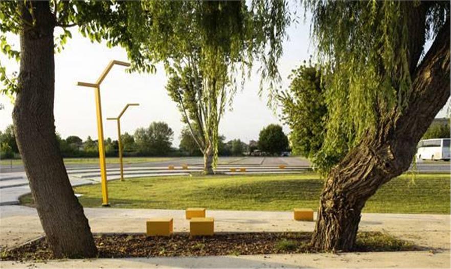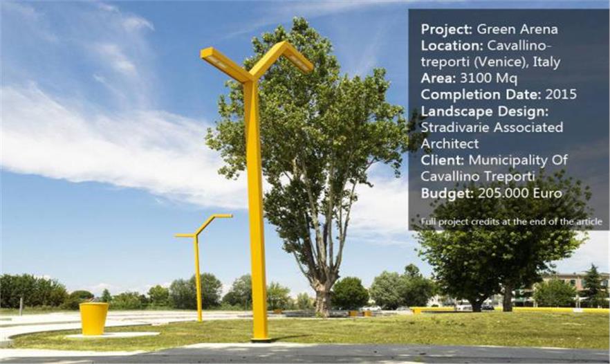 Green Arena位于意大利威尼斯東15—20千米的Cavallino小鎮(zhèn)上。該區(qū)域大部分是一個(gè)臨時(shí)性空間,定期改變整年的日?;顒?dòng)。這是市場(chǎng)、旅游者、露營(yíng)者和公共交通的所在地。