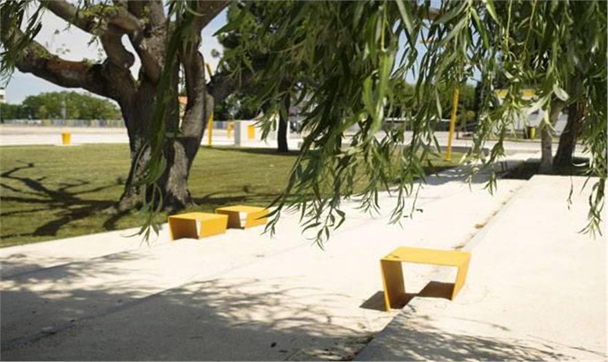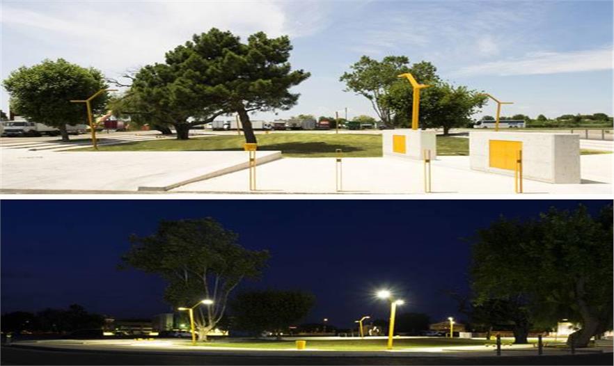 結(jié)合該區(qū)域是個(gè)市場(chǎng)的事實(shí),讓人們產(chǎn)生一種人性化區(qū)域的理念。入口是非常實(shí)用且簡(jiǎn)單的景觀藝術(shù)品,不會(huì)看起來很空或臨時(shí)被占據(jù)。