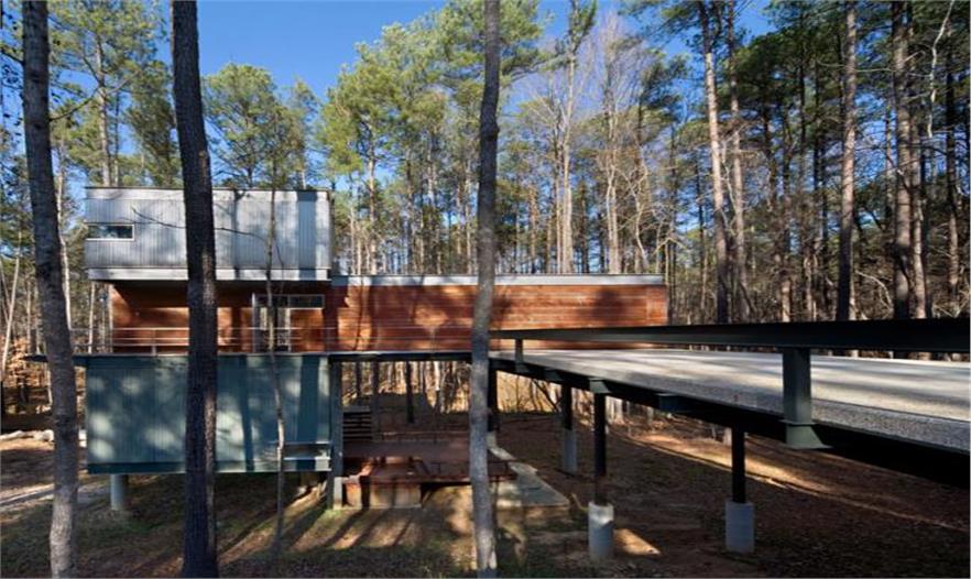 2.北卡羅來納州的這個現(xiàn)代化森林住宅周圍滿是高大挺拔的樹木。