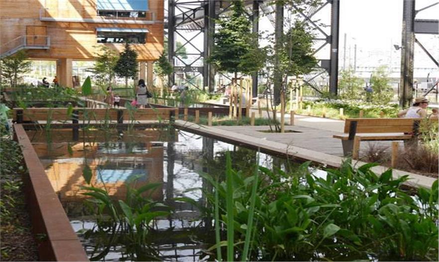 該公園位于Halle Pajol,目睹了工業(yè)時代的開始以及巴黎鐵路的變革。1926年,由于包裹運輸?shù)男枨?,在這個區(qū)域建造了一個長型鋼鐵大廳(藝術(shù)裝飾風(fēng)格),是貨物的裝卸臺。