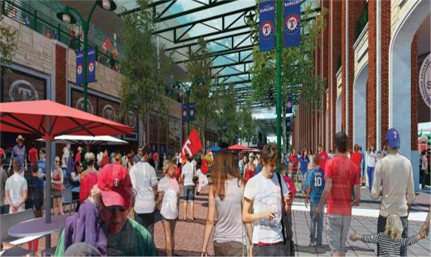 當(dāng)設(shè)計(jì)階段完成時(shí),新聞發(fā)布會(huì)的圖片和信息顯示該運(yùn)動(dòng)場(chǎng)將設(shè)有一個(gè)移動(dòng)性屋頂,用于遮陰和控制氣候,也會(huì)與鄰近的德克薩斯州Texas Live!休閑區(qū)(正在發(fā)展當(dāng)中)結(jié)合起來(lái)。