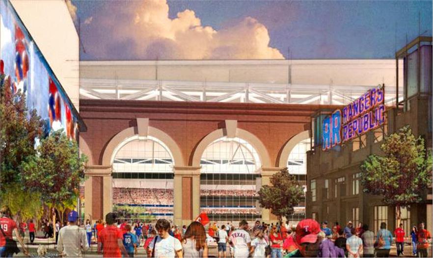 達(dá)拉斯設(shè)計(jì)事務(wù)所HKS成為德克薩斯州阿靈頓游騎兵隊(duì)新棒球場(chǎng)的設(shè)計(jì)師。游騎兵隊(duì)和阿靈頓市公私投資建造這個(gè)體育館:它將是游騎兵隊(duì)的大本營(yíng)以及中學(xué)、大學(xué)和國(guó)際體育賽事的多功能競(jìng)技場(chǎng)。