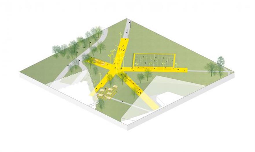 星形將作為不同景觀之間的聯(lián)結(jié)。 LOLA 將其形容為運(yùn)動(dòng)集會(huì)和工作相關(guān)的其他活動(dòng)的中心。自行車停放處,運(yùn)動(dòng)場和座位是各個(gè)星形空間中的重要元素。每一個(gè)星形都有一個(gè)主題。