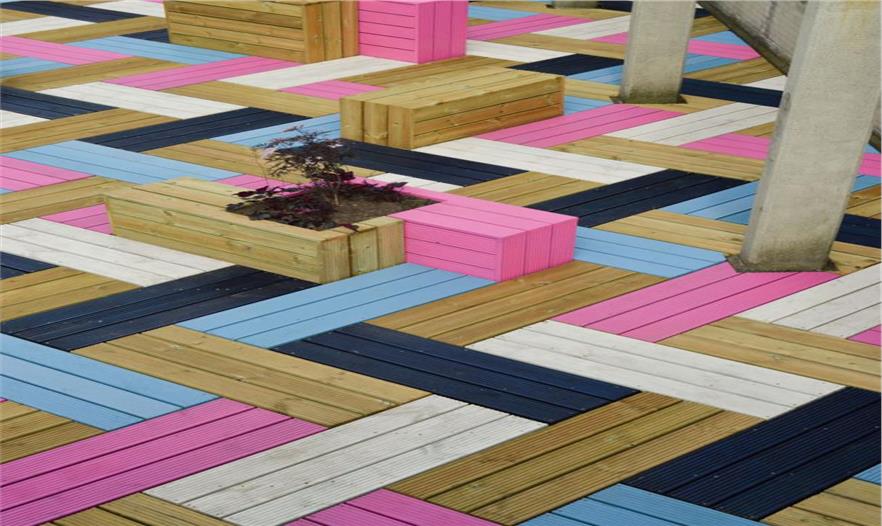 一些部分的圖案會抬升,留出放置花盆和長凳的空間,成為學(xué)生放松和學(xué)習(xí)的最佳地點(diǎn),或者是用作活動空間。