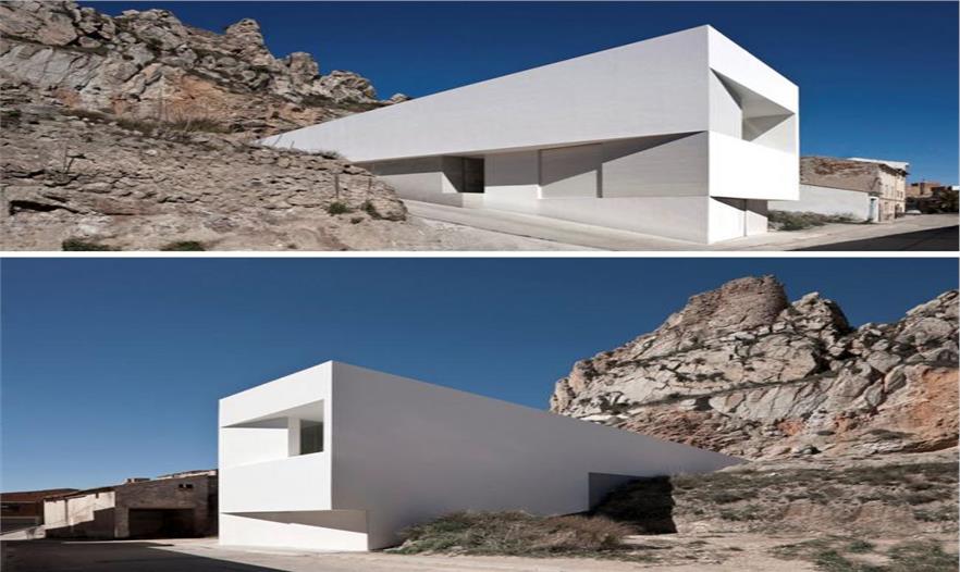10.這個大型白色的長方形建筑看起來是從后面大山的石塊中突出來的。設(shè)計單位:Fran Silvestre Arquitectos事務(wù)所