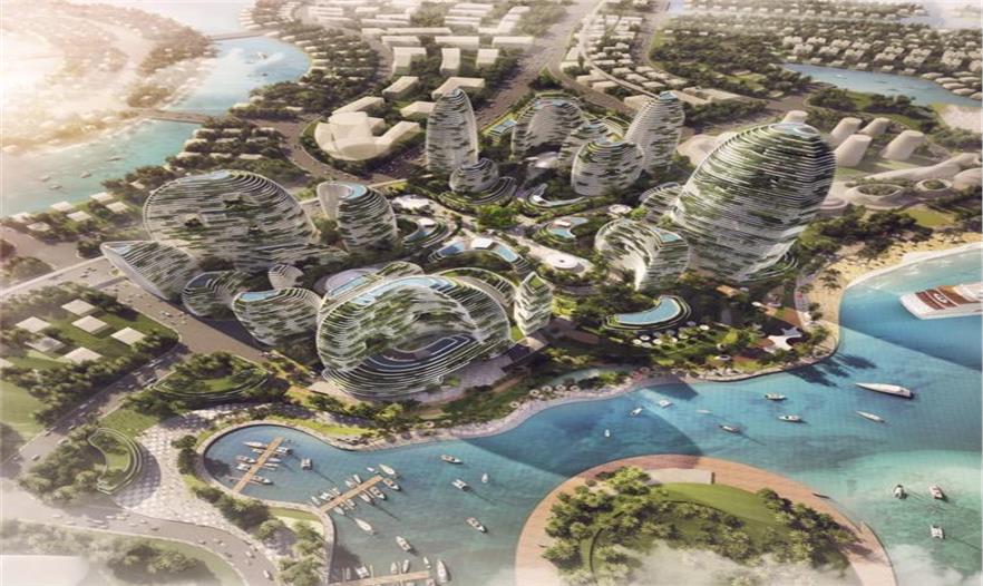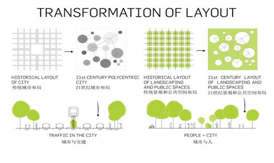 建筑物會圍繞中央公共空間——雨林谷分為五個(gè)手指形狀的部分代表中國道家的宇宙觀之五行(木,火,土,金,水)結(jié)合LAVA的可持續(xù)發(fā)展城市的五大支柱(經(jīng)濟(jì),環(huán)境,社會,文化和平等)。
