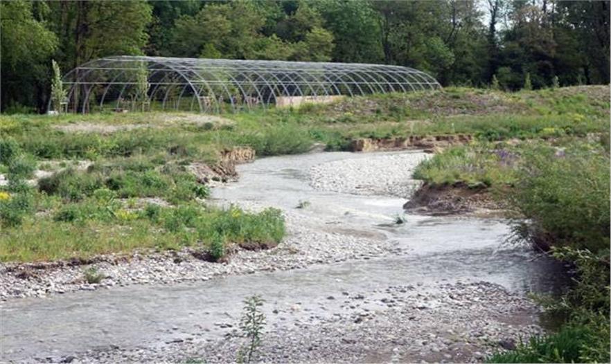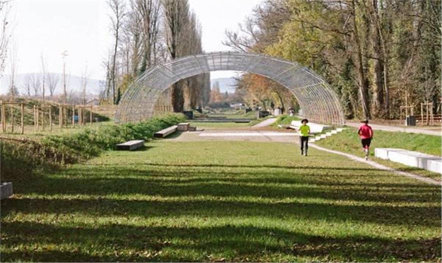 這條河流位于日內(nèi)瓦市的重要區(qū)域,為該區(qū)域賦予了一個獨特的空間定義。這樣的空間進(jìn)行改造很具有挑戰(zhàn)性。對于該河流本身的繪圖——意識到了設(shè)計固定河床的無用功以及河流自然發(fā)展的重要性——Georges Descombes事務(wù)所的設(shè)計師提議了一個圖形,其形狀解決了水流與預(yù)備區(qū)域之間的問題。