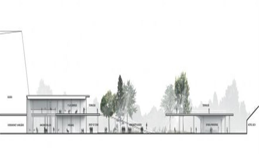 為了實(shí)現(xiàn)這一點(diǎn),設(shè)計(jì)在建筑的新進(jìn)入點(diǎn)匯聚了兩條循環(huán)路線,通過(guò)藝術(shù)展和葉飾(包括綠墻)進(jìn)一步完成。圓形屋頂用作運(yùn)動(dòng)場(chǎng),斜坡用作戶外座椅,并且用來(lái)抵擋惡劣天氣。