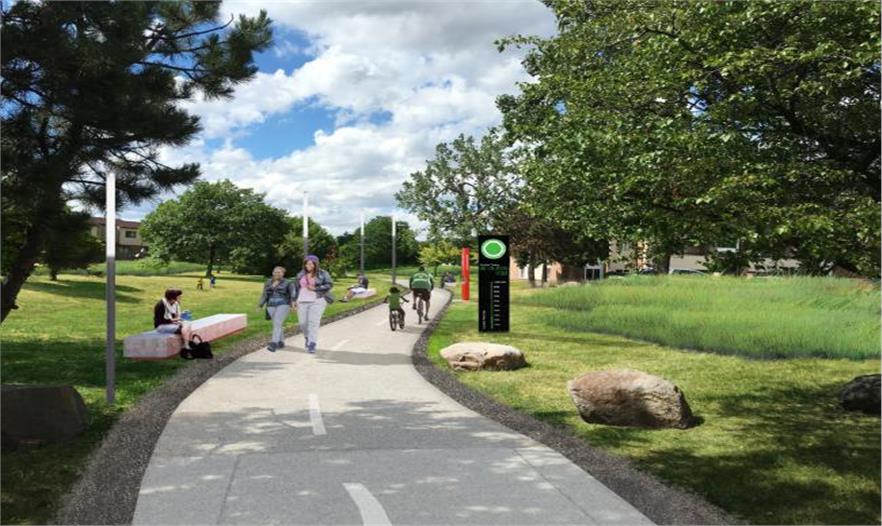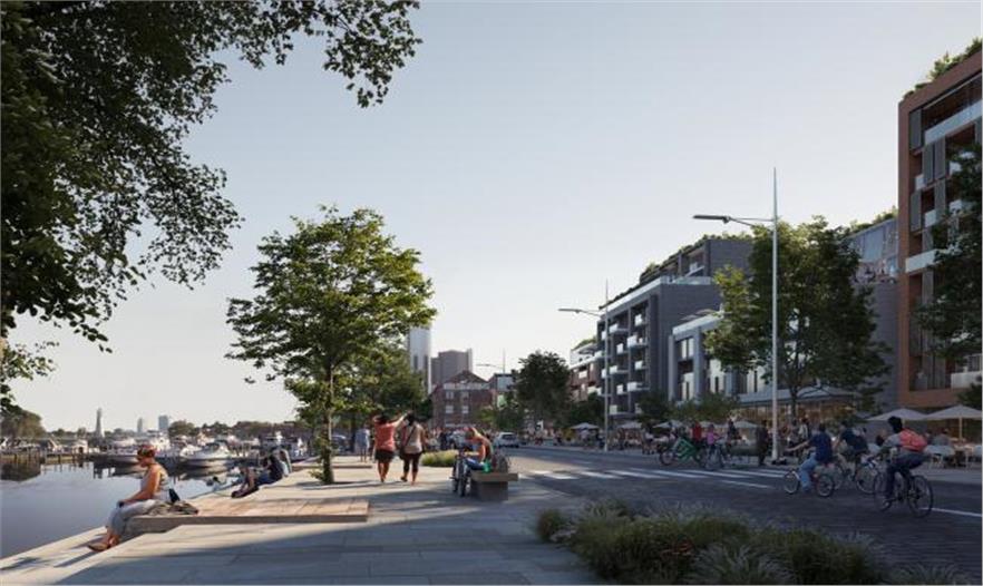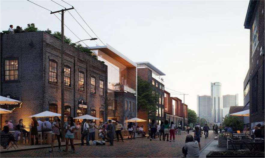 為了激活底特律東濱水沿岸社區(qū),現(xiàn)存的主干道將會升級為林蔭路,并更新沿路照明、路面鋪磚和景觀系統(tǒng)。特別是被重新設(shè)計的杰弗遜大道(Jefferson Avenue)將會增加行人道路和騎行道路,加強(qiáng)河沿岸居民和北邊居民的聯(lián)系。為了提高這一地區(qū)的密度和活力,底特律還將進(jìn)一步升級河沿岸的皂石建筑,將其轉(zhuǎn)換為復(fù)合型建筑。