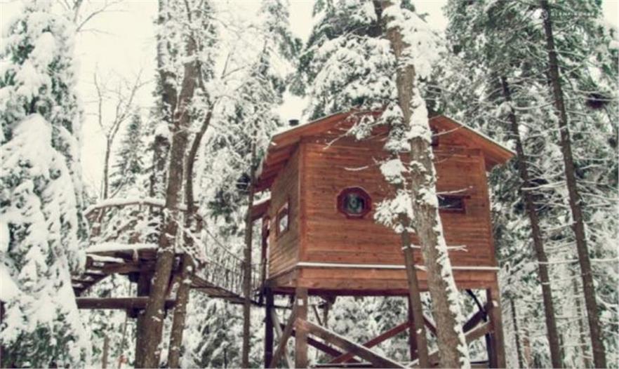 有人肯定不知道怎么讀出這個小鎮(zhèn)Nominingue,但要知道它位于魁北克,離渥太華和蒙特利爾幾個小時的車程。這個樹屋位于冷杉、楓樹和樺樹之間,有太陽能發(fā)光源,景色優(yōu)美,通過迷宮般的小橋和樓梯進入。這個鄉(xiāng)村小屋的完美位置能夠暫時讓雪停駐,附近還有一個野生動物保護區(qū)和一個小城鎮(zhèn)。