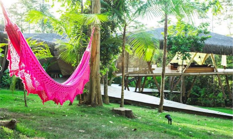 這個雨林樹屋位于巴西巴伊亞附近,讓游客感覺踏入了一個迷人的蔥郁世界。其露天布局會讓游客置身于廣闊的自然景觀中,同時還能在吊床上休息、在實地游泳池里游泳或在露臺上觀看自然棲息地中的野生動物。這個樹屋是由回收的百年樹木建造,覆蓋著纖維櫚(棕櫚樹葉柄中強韌的纖維)巧妙設(shè)計的屋頂。