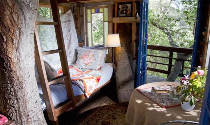 南加利福尼亞州樹屋的景色無與倫比??蛻粢筮@個樹屋風格古雅,設(shè)有手工噴繪的大床、古老的棋類游戲和古式家具。設(shè)計結(jié)果就是一個雅致空間,感覺是為愛好自然的藝術(shù)家建造的一個游樂場(或像瑪麗•安托瓦內(nèi)特和她的小特里亞農(nóng)宮)。戶外繩床和16公頃(40英畝)的農(nóng)場和林地也是吸引游客前來的一處景點。