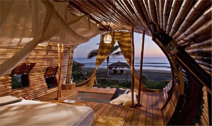 這個樹屋綠葉繁密的室內(nèi)與戶外遙相呼應(yīng),木制元素變化多樣,而且室內(nèi)設(shè)備齊全,設(shè)有電冰箱、私人熱水浴缸和盥洗室。人們住在樹屋期間,海灘和山脈景色不斷切換。由于該樹屋位于氣候溫和地帶,全年舒適享受。