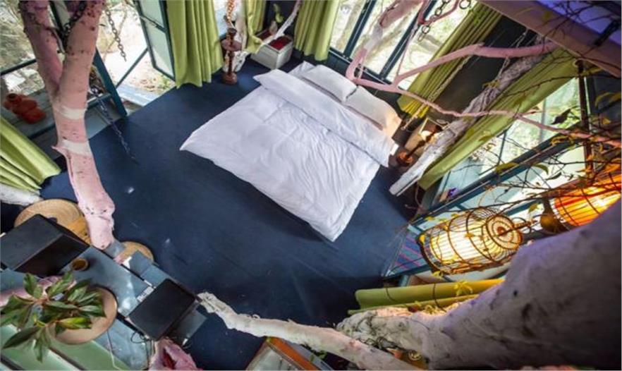 河內(nèi)的這個樹屋會讓游客感覺他們位于充滿藝術(shù)氣息的秘密花園中。該設(shè)計是由當?shù)厮囆g(shù)家設(shè)計,改變了典型的鄉(xiāng)村裝飾,加入了原始藝術(shù)裝置(如一些漂浮的室外雕塑,在晚上也會發(fā)光)和現(xiàn)代化裝置,如小型的“酒吧”和一個環(huán)繞立體聲系統(tǒng)。這個廣闊的花園景色會讓游客駐足,即使它們在離地面12米(40英尺)的地方上。