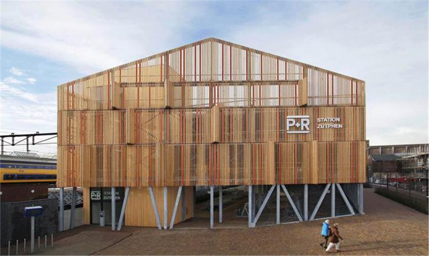 這座建筑位于Noorderhaven區(qū)該城鎮(zhèn)火車站附近,由Moederscheim Moonen Architects事務(wù)所設(shè)計(jì)。這個(gè)P+R建筑群有375個(gè)停車位和600多個(gè)自行車停車設(shè)施,滿足了Zutphen車站附近日益增長的停車需求。