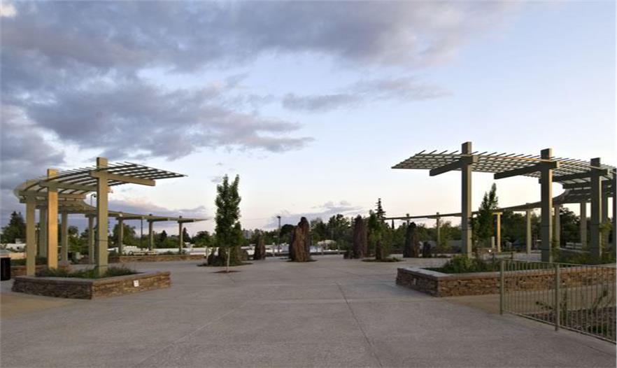 奧羅維爾市保留了RRM Design Group事務(wù)所引導(dǎo)的公共發(fā)展程序,為具有歷史意義的奧羅維爾市區(qū)羽毛河沿河地帶規(guī)劃了構(gòu)思方案。該方案計(jì)劃將奧羅維爾市區(qū)與該河流連接起來,設(shè)計(jì)了濱河步道、一系列觀景臺(tái)和新建的百年紀(jì)念廣場(紀(jì)念該城鎮(zhèn)的百年歷史)。為了將解釋性設(shè)計(jì)與景觀設(shè)計(jì)融合起來,RRM事務(wù)所設(shè)計(jì)了這個(gè)圓形廣場,特色是一排立石,建造出一條通道,暗示這個(gè)廣場下面的這條河流。青銅澆筑的鮭魚模型放在這些石頭上面,貫穿整個(gè)空間。廣場鋪裝中嵌入了時(shí)間流動(dòng)標(biāo)志,由無銹鋼建造而成,記錄奧羅維爾重要的歷史活動(dòng)。而且,這些元素還闡釋了奧羅維爾的故事以及與羽毛河之間的關(guān)系。這個(gè)廣場位于一個(gè)小花園內(nèi),與濱河道相鄰,貫穿了整個(gè)城鎮(zhèn)。