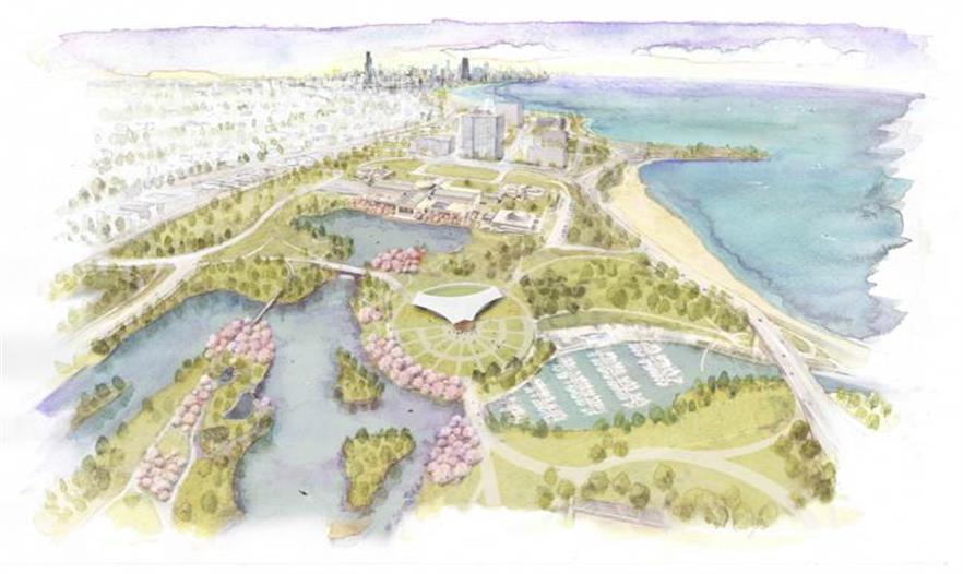 杰克遜公園是密歇根湖沿線芝加哥11千米(7英里)綠景的南部焦點(diǎn),也是1893年世界博覽會(huì)的舉辦地,由聞名的景觀設(shè)計(jì)師丹尼爾.伯納姆(Daniel Burnham)和Frederick Law Olmsted事務(wù)所設(shè)計(jì)。由于幾十年的忽視、拆除和火災(zāi),wHY事務(wù)所在領(lǐng)導(dǎo)重建和復(fù)興這個(gè)202多公頃城市公園的倡議,融入許多原始主體方案理念。