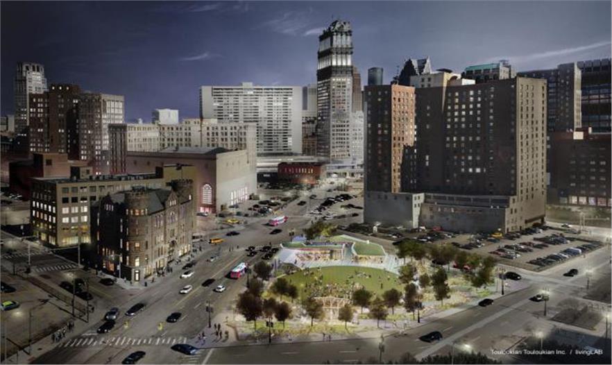 底特律也在一系列新景觀和公共公園項(xiàng)目之列,尤其是其濱河區(qū)。這個相對較小、0.6公頃(1.5英畝)的公園位于DTE能源總部附近,之前滿是碎石,期待成為該市區(qū)西邊的一個新聚集空間,特色是自行車停車處、表演舞臺、流動餐車以及全年開放的飯店。在一個不以綠色空間聞名的城市中心,這個可能會成為一個改造項(xiàng)目,類似戰(zhàn)神廣場,引導(dǎo)該市區(qū)部分流入更多的投資。